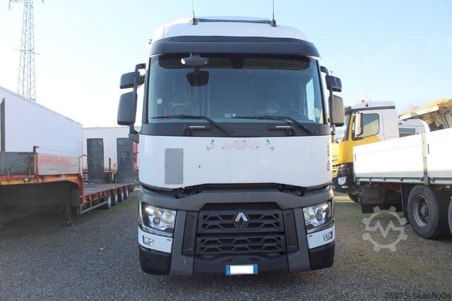 Renault lastbiltrækker med lav ramme, rulleleje med variabel højde fra 98 cm til 130 cm til koblingshøjde, 640.000 km, automatgear, retarder, Euro 6, radio, køleskab, CB-radio, dobbelt tank, sidde- og tagspoiler, fuld luftaffjedring, årgang 2017. Forhandler: INTEDRIVE SRL, Parma.